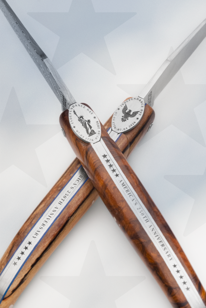 À l’occasion du 250ème anniversaire de l’Indépendance des États-Unis, Laguiole en Aubrac rend hommage à cet événement fondateur de l’histoire américaine à travers une collection de couteaux d’exception.