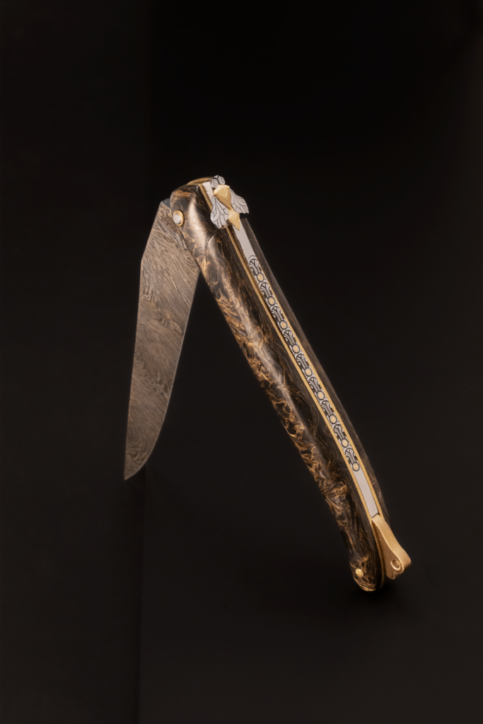 Derrière cette création se trouve Anthony, l’un des jeunes couteliers de l’atelier. Façonné avec précision et exigence, le GATSBY reflète son engagement et sa progression constante. Au fil des années, il a su perfectionner son art grâce à la transmission et au partage d’expérience de ses ainés. Cette dynamique intergénérationnelle, profondément ancrée dans l’ADN de Laguiole en Aubrac, permet à chaque talent d’émerger et de s’exprimer pleinement.